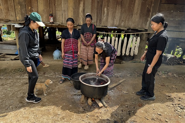 วันที่ 24 ตุลาคม – 2 พฤศจิกายน พ.ศ. 2568 นางสาวรรณิดา ไพราม และนางสาวอุไรวรรณ ดีแฮ เจ้าหน้าที่โครงการฝ่ายภาคเหนือ คสธ. ร่วมกับเจ้าหน้าที่จากสำนักงานส่งเสริมการเรียนรู้ประจำจังหวัดตาก กองกำกับการตำรวจตระเวนชายแดนที่ 34 และสำนักงานเขตพื้นที่การศึกษาประถมศึกษาตาก เขต 2 ได้ไปติดตามงานกลุ่มอาชีพประชาชน ในโครงการส่งเสริมอาชีพ ตามพระราชดำริ สมเด็จพระกนิษฐาธิราชเจ้า กรมสมเด็จพระเทพรัตนราชสุดา ฯ สยามบรมราชกุมารี ในพื้นที่จังหวัดตาก รวมจำนวน 12 กลุ่ม เพื่อติดตามการดำเนินงาน รับทราบปัญหาอุปสรรค และความต้องการการสนับสนุนของกลุ่ม ได้แก่ กลุ่มพัฒนาอาชีพบ้านคอโซทะ กลุ่มพัฒนาอาชีพบ้านนุกะโถะวา กลุ่มทอผ้าปกาเกอะญอย้อมสีธรรมชาติบ้านแม่ละมุ้งคี กลุ่มทอผ้าปกาเกอะญอย้อมสีธรรมชาติบ้านเดลอปอบอ อำเภออุ้มผาง, กลุ่มทอผ้าปกาเกอะญอย้อมสีธรรมชาติบ้านขุนห้วยแม่สอด กลุ่มทอผ้าปกาเกอะญอย้อมสีธรรมชาติบ้านถ้ำเสือ อำเภอแม่สอด, กลุ่มทอผ้าปกาเกอะญอย้อมสีธรรมชาติบ้านห้วยขนุน กลุ่มทอผ้าบ้านห้วยพลู อำเภอแม่ระมาด, กลุ่มทอผ้าปกาเกอะญอย้อมสีธรรมชาติบ้านซอแข่วาคี กลุ่มทอผ้าปกาเกอะญอย้อมสีธรรมชาติบ้านทีจือหล่อคี กลุ่มทอผ้าปกาเกอะญอย้อมสีธรรมชาติบ้านตะโต๊ะโกร และกลุ่มทอผ้าปกาเกอะญอย้อมสีธรรมชาติบ้านป่าสัก อำเภอท่าสองยาง สำหรับกลุ่มในพื้นที่อำเภอท่าสองยาง คสธ.ได้จัดกิจกรรมศึกษาดูงานเรื่องการย้อมสีธรรมชาติ ให้แก่สมาชิก ณ ศูนย์เรียนรู้วัฒนธรรมทอผ้ากะเหรี่ยงบ้านหล่ายแก้ว จังหวัดเชียงใหม่ เมื่อเดือนมิถุนายนที่ผ่านมา ผลจากการศึกษาดูงานสมาชิกสามารถนำความรู้ที่ได้ไปถ่ายทอดให้กับสมาชิก และสามารถประยุกต์ใช้นำวัสดุธรรมชาติที่มีในท้องถิ่น เช่น ขมิ้น ไม้เพกา และไม้ประดู่ มาเป็นวัตถุดิบในการย้อมสีผ้าทำให้ได้สีผ้าที่มีความหลากหลายมากขึ้น