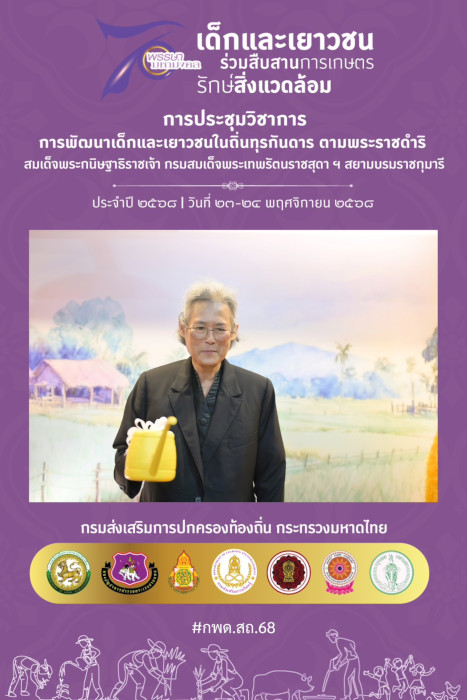 วันที่ 24 พฤศจิกายน พ.ศ. 2568 เวลา 08.55 น. สมเด็จพระกนิษฐาธิราชเจ้า กรมสมเด็จพระเทพรัตนราชสุดา ฯ สยามบรมราชกุมารี เสด็จพระราชดำเนินไปทรงเปิดการประชุมวิชาการการพัฒนาเด็กและเยาวชนในถิ่นทุรกันดาร ตามพระราชดำริ ประจำปี 2568 “70 พรรษามหามงคล เด็กและเยาวชนร่วมสืบสานการเกษตร รักษ์สิ่งแวดล้อม” ณ หอประชุม BANGKOK THONBURI HALL มหาวิทยาลัยกรุงเทพธนบุรี เขตทวีวัฒนา กรุงเทพมหานคร โดยมีนายทรงศักดิ์ ทองศรี รัฐมนตรีช่วยว่าการกระทรวงมหาดไทย พร้อมทั้งที่ปรึกษางานโครงการตามพระราชดำริฯ หัวหน้าส่วนราชการ และข้าราชการ เฝ้าฯ รับเสด็จ สำหรับการประชุมวิชาการครั้งนี้ จัดขึ้นเป็นครั้งที่ 11 ระหว่างวันที่ 23-24 พฤศจิกายน พ.ศ. 2568 มีกรมส่งเสริมการปกครองท้องถิ่น เป็นเจ้าภาพหลัก ร่วมกับหน่วยงานสถานศึกษาภายใต้โครงการพัฒนาเด็กและเยาวชนในถิ่นทุรกันการ ตามพระราชดำริ โดยมีบุคลากรทางการศึกษา และผู้ปฏิบัติงานโครงการตามพระราชดำริ เข้าร่วมการประชุม จำนวน 1,400 คน