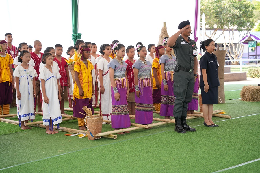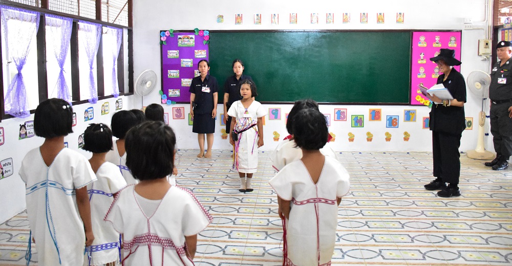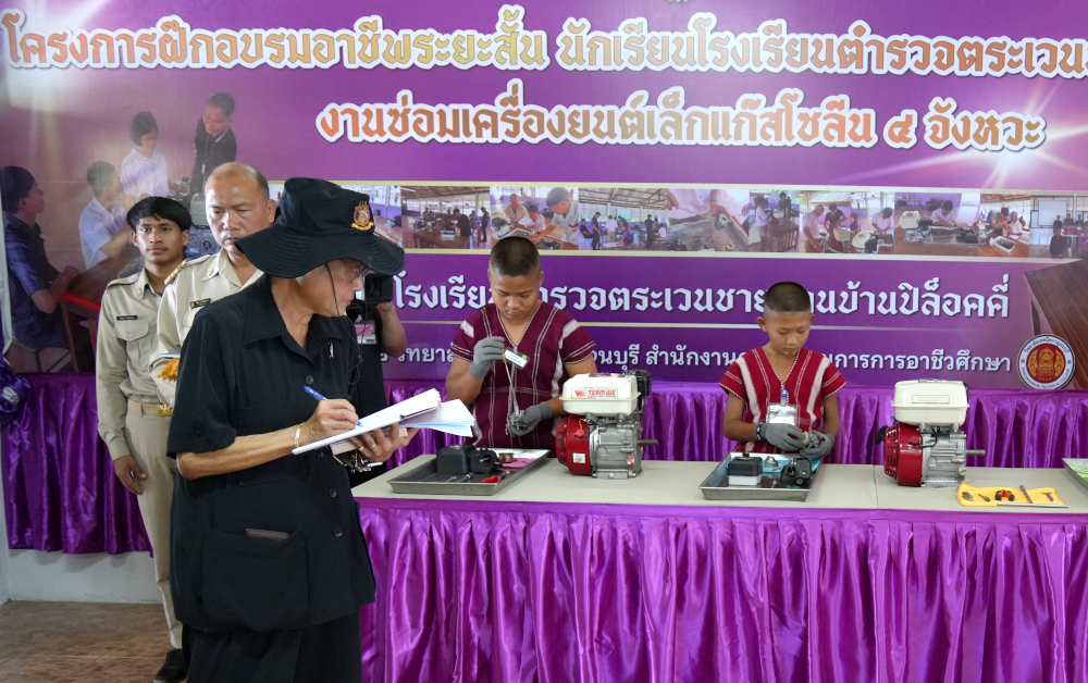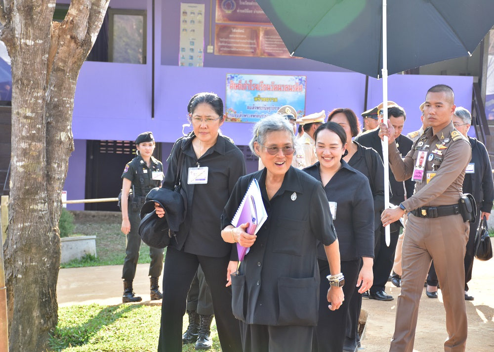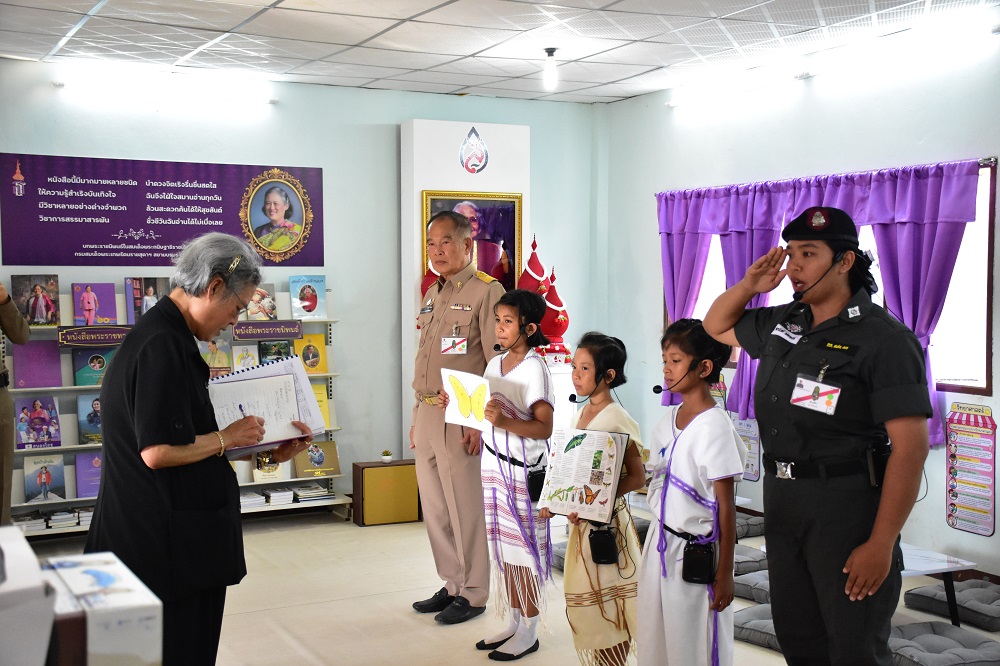 ทอดพระเนตรการดำเนินกิจกรรมโครงการตามพระราชดำริ อาทิ กิจกรรมฝึกวิชาชีพ ฝึกสอนนักเรียนทอผ้าและตัดเย็บผ้าทอเป็นผลิตภัณฑ์เสื้อและกระเป๋าย่าม นอกจากนี้ยังได้รับความมือจากวิทยาลัยเทคนิคกาญจนบุรี มาช่วยฝึกสอนนักเรียนซ่อมเครื่องยนต์เล็ก ทำให้นักเรียนมีพื้นฐานการประกอบอาชีพ ในการนี้ทอดพระเนตรการจัดการเรียนการสอนนักเรียนชั้นอนุบาล กิจกรรมอนุรักษ์วัฒนธรรมและภูมิปัญญาท้องถิ่น การแสดงชุด “กะเหรี่ยงกระทบไม้” ซึ่งเป็นการละเล่นพื้นบ้านของชนเผ่ากะเหรี่ยงปกาเกอะญอ นิยมเล่นในเทศกาลต่างๆ เพื่อความสนุกสนานและความสามัคคีของคนในหมู่บ้าน