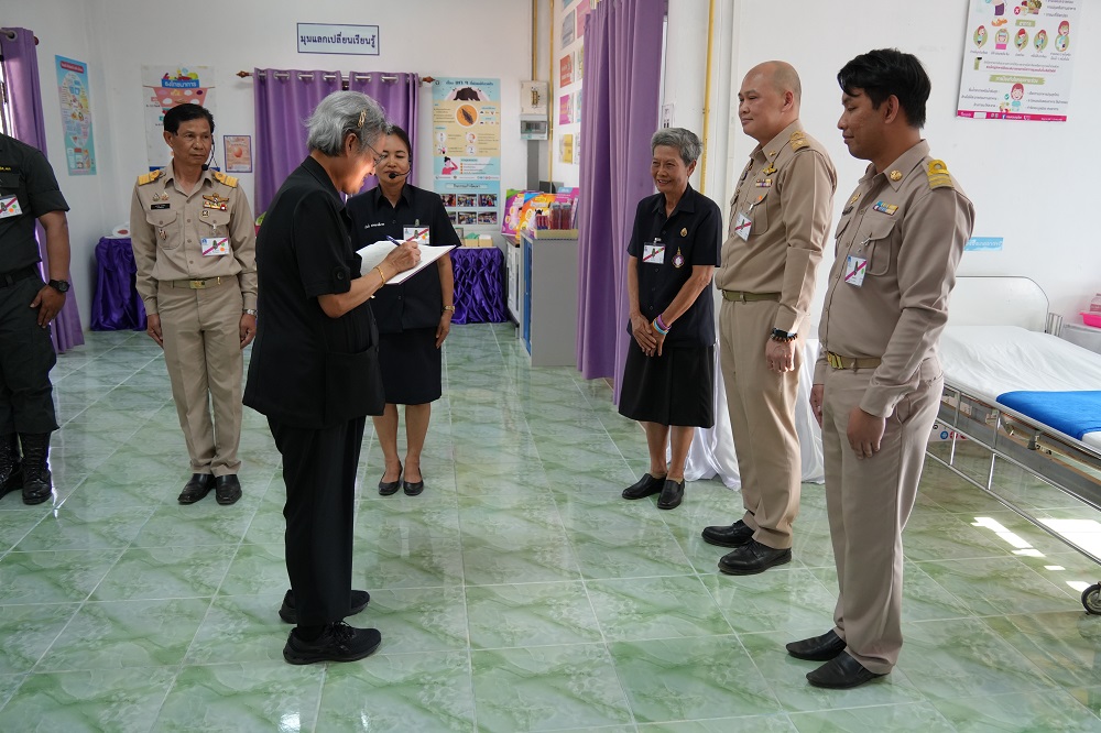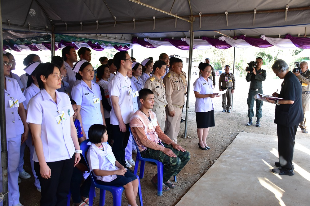 โอกาสนี้ทรงเยี่ยมราษฎรและหน่วยแพทย์พระราชทาน ที่ทรงพระกรุณาโปรดเกล้าฯ ให้โรงพยาบาลทองผาภูมิ ร่วมออกหน่วยตรวจรักษาโรคทั่วไปให้กับนักเรียนและประชาชน
