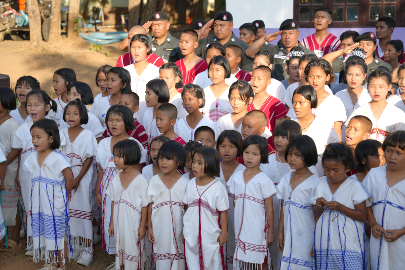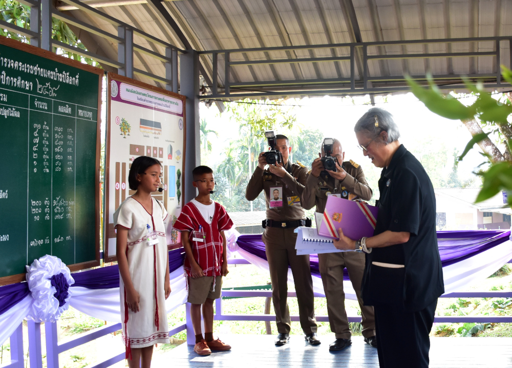 โอกาสนี้พระราชทานสิ่งของ พร้อมอุปกรณ์การศึกษาแก่ครูใหญ่และผู้แทนนักเรียน พระราชทานพันธุ์ไม้ผลและเมล็ดพันธุ์ผักแก่ผู้แทนชาวบ้าน จากนั้นพระราชทานพระราชวโรกาสให้นักเรียนในพระราชานุเคราะห์ ที่กำลังศึกษาอยู่ จำนวน 8 คน เฝ้าฯ ถวายรายงานผลการเรียน ในโอกาสนี้ประธานชมรมนักเรียนในพระราชานุเคราะห์ พื้นที่จังหวัดกาญจนบุรี กราบบังคมทูลรายงานการดำเนินงานของชมรมนักเรียนในพระราชานุเคราะห์