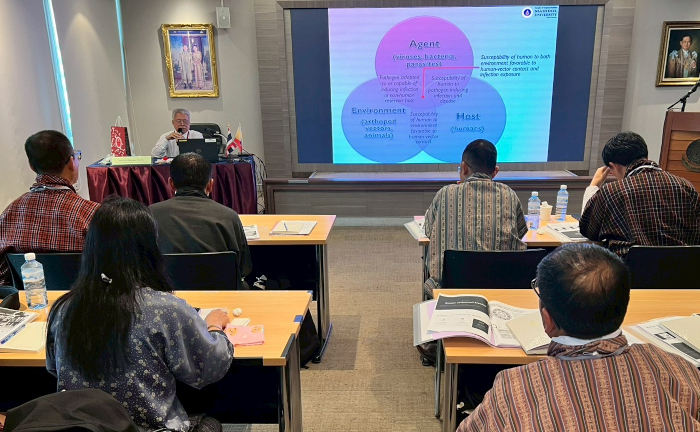 วันที่ 12 กุมภาพันธ์ พ.ศ. 2569 พ.อ.หญิง รศ.นันทพร วีรวัฒน์ ที่ปรึกษาโครงการส่วนพระองค์สมเด็จพระกนิษฐาธิราชเจ้า กรมสมเด็จพระเทพรัตนราชสุดา ฯ สยามบรมราชกุมารี เป็นประธานในการปฐมนิเทศและกล่าวต้อนรับคณะครูและผู้แทนกระทรวงศึกษาธิการ จากราชอาณาจักรภูฏาน จำนวนทั้งสิ้น 36 คน ที่เข้ารับการฝึกอบรมการพัฒนาเด็กและเยาวชน สำหรับครูและผู้ปฏิบัติงาน ภายใต้โครงการความร่วมมือระหว่างราชอาณาจักรไทยและราชอาณาจักรภูฏาน ด้านการพัฒนาเด็กและเยาวชน ตามพระราชดำริ สมเด็จพระกนิษฐาธิราชเจ้า กรมสมเด็จพระเทพรัตนราชสุดา ฯ สยามบรมราชกุมารี ซึ่งจัดขึ้นระหว่างวันที่ 11 – 21 กุมภาพันธ์ พ.ศ. 2569 เพื่อเพิ่มพูนความรู้ความเข้าใจในการดำเนินโครงการพัฒนาเด็กและเยาวชนตามพระราชดำริ อีกทั้งเป็นการเปิดโอกาสให้บุคลากรของทั้งสองประเทศได้แลกเปลี่ยนประสบการณ์ร่วมกันด้านการพัฒนาเด็กและเยาวชน โอกาสนี้รองศาสตราจารย์ นายแพทย์วีระพงษ์ ภูมิรัตนประพิณ คณบดีคณะเวชศาสตร์เขตร้อน มหาวิทยาลัยมหิดล ร่วมกล่าวต้อนรับคณะผู้เข้ารับการฝึกอบรม โดยมีนายไพบูลย์ ศิริแสงตระกูล ที่ปรึกษาโครงการพัฒนาเด็กและเยาวชน พร้อมด้วยคณาจารย์ มหาวิทยาลัยมหิดล เข้าร่วม ณ ห้องประชุมประตาป สิงหศิวานนท์ คณะเวชศาสตร์เขตร้อน มหาวิทยาลัยมหิดล
