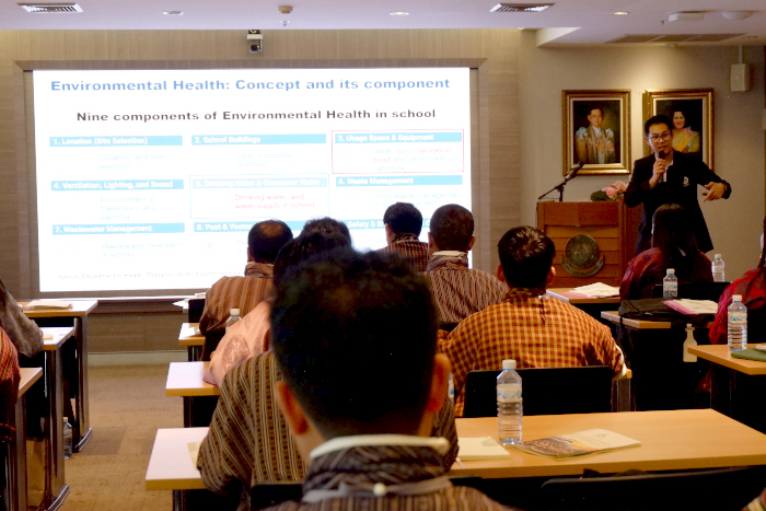 จากนั้นผู้เข้าร่วมการฝึกอบรม ได้ร่วมรับฟังการแบ่งปันประสบการณ์ด้านการส่งเสริมสุขภาพในโรงเรียน โดยคณาจารย์ มหาวิทยาลัยมหิดล ในหัวข้อต่างๆ ได้แก่ School Health, Common Health Problems, Sanitation and Drinking Water in Thai Schools: An Environmental Health Perspective และ The Role of Teachers in Thai school