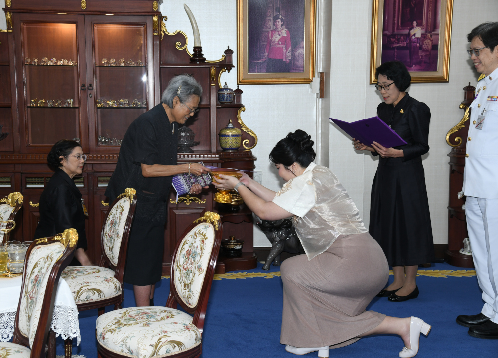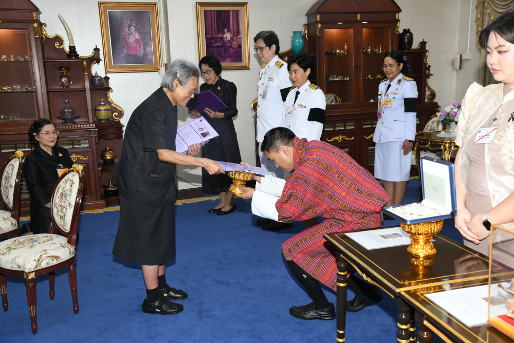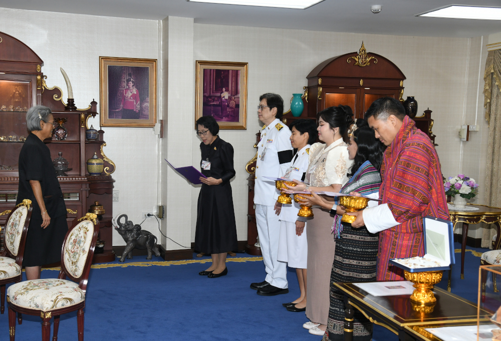 วันที่ 6 มีนาคม พ.ศ. 2569 เวลา 09.00 น. สมเด็จพระกนิษฐาธิราชเจ้า กรมสมเด็จพระเทพรัตนราชสุดา ฯ สยามบรมราชกุมารี เสด็จลง ณ อาคารชัยพัฒนา สวนจิตรลดา พระราชวังดุสิต พระราชทานพระราชวโรกาสให้พันเอกหญิง รองศาสตราจารย์นันทพร วีรวัฒน์ ที่ปรึกษาโครงการส่วนพระองค์สมเด็จพระกนิษฐาธิราชเจ้า กรมสมเด็จพระเทพรัตนราชสุดา ฯ สยามบรมราชกุมารี นำนักศึกษาทุนพระราชทาน หลักสูตรวิทยาศาสตรมหาบัณฑิต สาขาอนามัยโรงเรียน คณะเวชศาสตร์เขตร้อน มหาวิทยาลัยมหิดล ได้แก่ นางสาว Christine Isable B. Buenvenida เจ้าหน้าที่การศึกษาและส่งเสริมสุขภาพ กระทรวงศึกษาธิการสาธารณรัฐฟิลิปปินส์ นางสาว Mariana Octavia Nolasco เจ้าหน้าที่การศึกษา สาธารณรัฐประชาธิปไตยติมอร์-เลสเต และนาย Tashi Chophel ครูจากโรงเรียนประถมศึกษาเกเนคา (Genekha Primary School) ราชอาณาจักรภูฏาน เฝ้าทูลละอองพระบาท กราบบังคมทูลรายงานผลการเรียน ในโอกาสนี้คณบดี พร้อมด้วยประธานหลักสูตรวิทยาศาสตรมหาบัณฑิต สาขาอนามัยโรงเรียน คณะเวชศาสตร์เขตร้อน มหาวิทยาลัยมหิดล ร่วมเฝ้าทูลละอองพระบาทด้วย