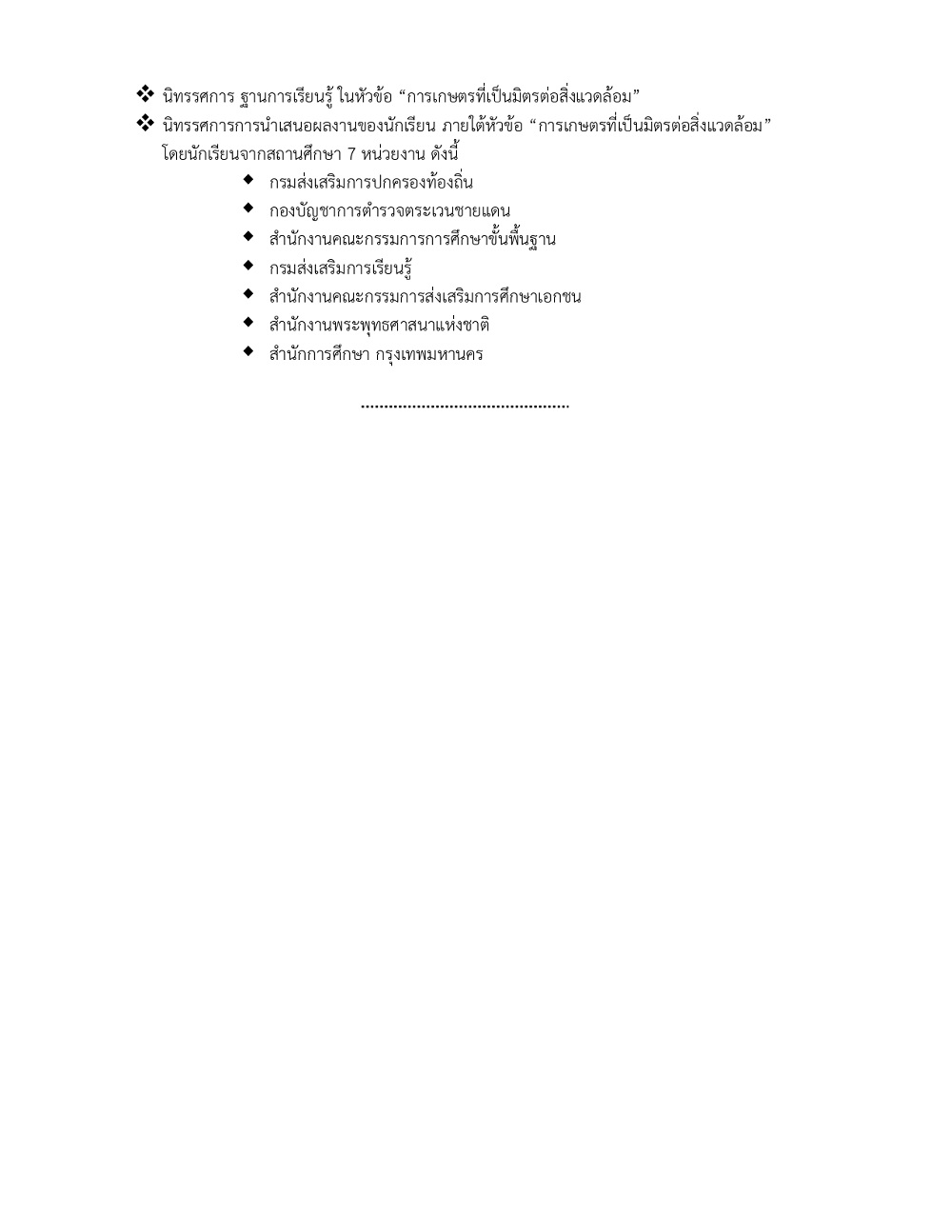 การประชุมวิชาการประกอบด้วยกิจกรรมหลากหลาย ภายใต้หัวข้อ “การเกษตรที่เป็นมิตรต่อสิ่งแวดล้อม” อาทิ การเสวนาแนวปฏิบัติที่ดีรายด้านของสถานศึกษา การนำเสนอผลงานแนวปฏิบัติที่ดีในการพัฒนาเด็กและเยาวชน การประกวดแข่งขันทักษะวิชาการของนักเรียน 7 กิจกรรม ประกอบด้วย กิจกรรมการเล่านิทาน การตัด ปะ ฉีก การวาดภาพระบายสี การคัดลายมือ การเขียนเรียงความภาษาไทย การเขียนเรียงความภาษาอังกฤษ และการนำเสนอผลงานของนักเรียน นอกจากนี้ยังมีการประกวดผลงานแนวปฏิบัติที่ดีรายด้านของครู 6 ด้าน ได้แก่ ด้านโภชนาการและสุขภาพอนามัย การส่งเสริมคุณภาพการศึกษา การส่งเสริมอาชีพ การอนุรักษ์วัฒนธรรมท้องถิ่น คุณธรรมและจริยธรรม และการอนุรักษ์ทรัพยากรธรรมชาติและสิ่งแวดล้อม รวมทั้งการจัดแสดงนิทรรศการเฉลิมพระเกียรติฯ นิทรรศการการนำเสนอผลงานของนักเรียนของสถานศึกษา 7 สังกัด เป็นต้น
